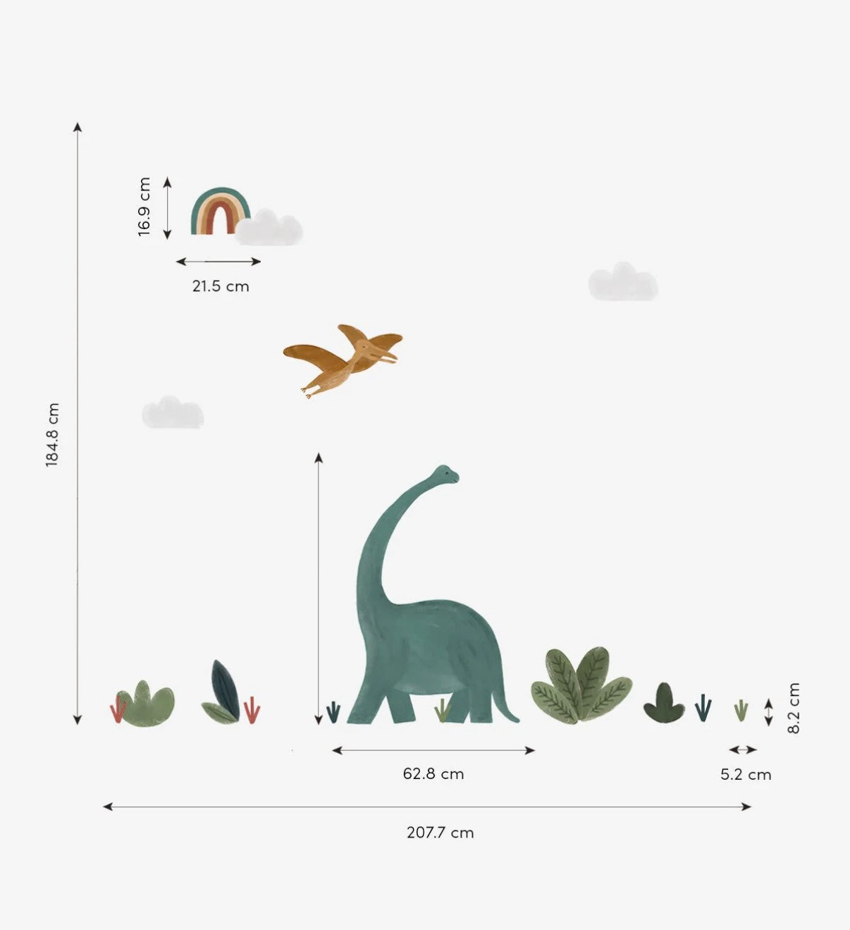 Met deze stoere muurstickers breng je de prehistorie tot leven in de kinderkamer. Van een vriendelijke brontosaurus en stegosaurus tot een machtige T-rex en vliegende pterodactylus – jouw kleine dinofan waant zich midden in de oertijd.