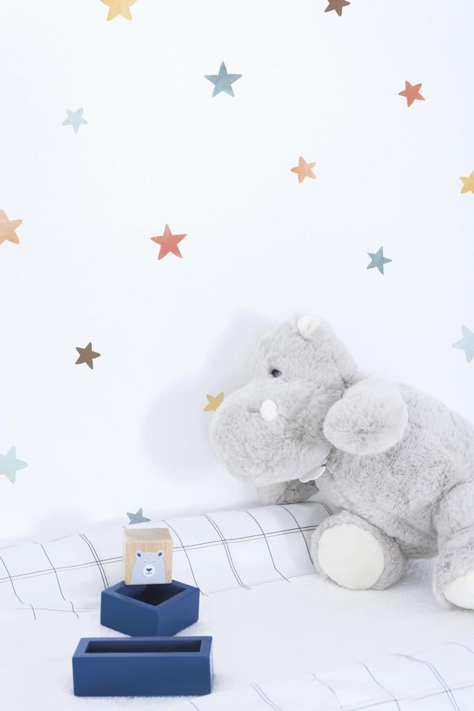 Breng magie en speelsheid in de kamer met deze prachtige Lilipinso wandsticker, ontworpen door Anastasia Lembrik. Het design bestaat uit sterren in warme tinten geel, oranje, rood, blauw en bruin, allemaal in een zachte aquarelstijl. Zo creëer je eenvoudig een dromerige en vrolijke sfeer.
