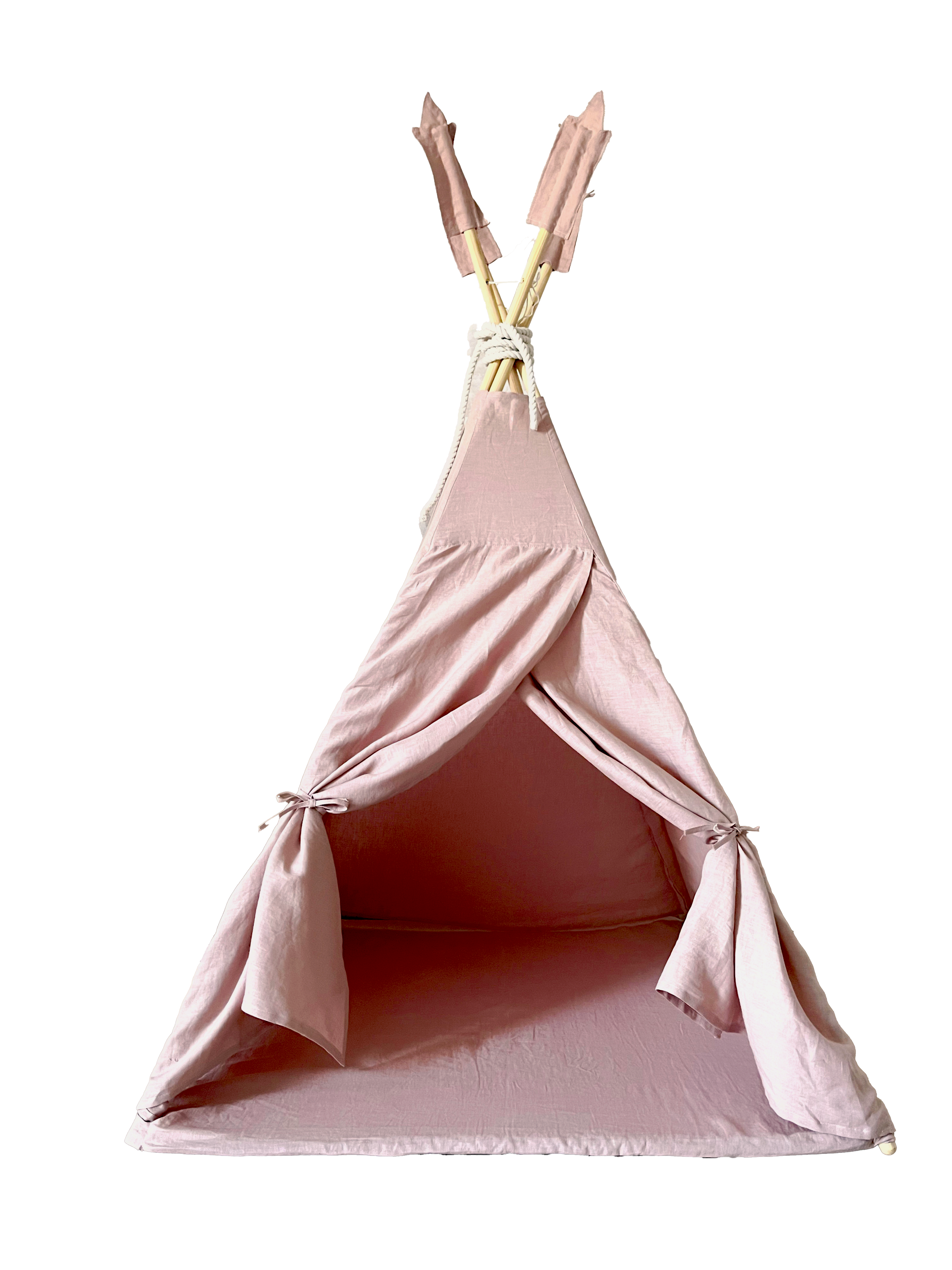 De linnen tipi tent is de ideale plek voor kleine ontdekkers om te spelen, lezen of gewoon even tot rust te komen. Gemaakt van 100% zacht linnen met een natuurlijke uitstraling, brengt deze tipi een gevoel van rust en warmte in de kinderkamer. De houten stokken zorgen voor een stevige constructie, terwijl het ademende linnen de tent licht en luchtig houdt — perfect voor binnen.