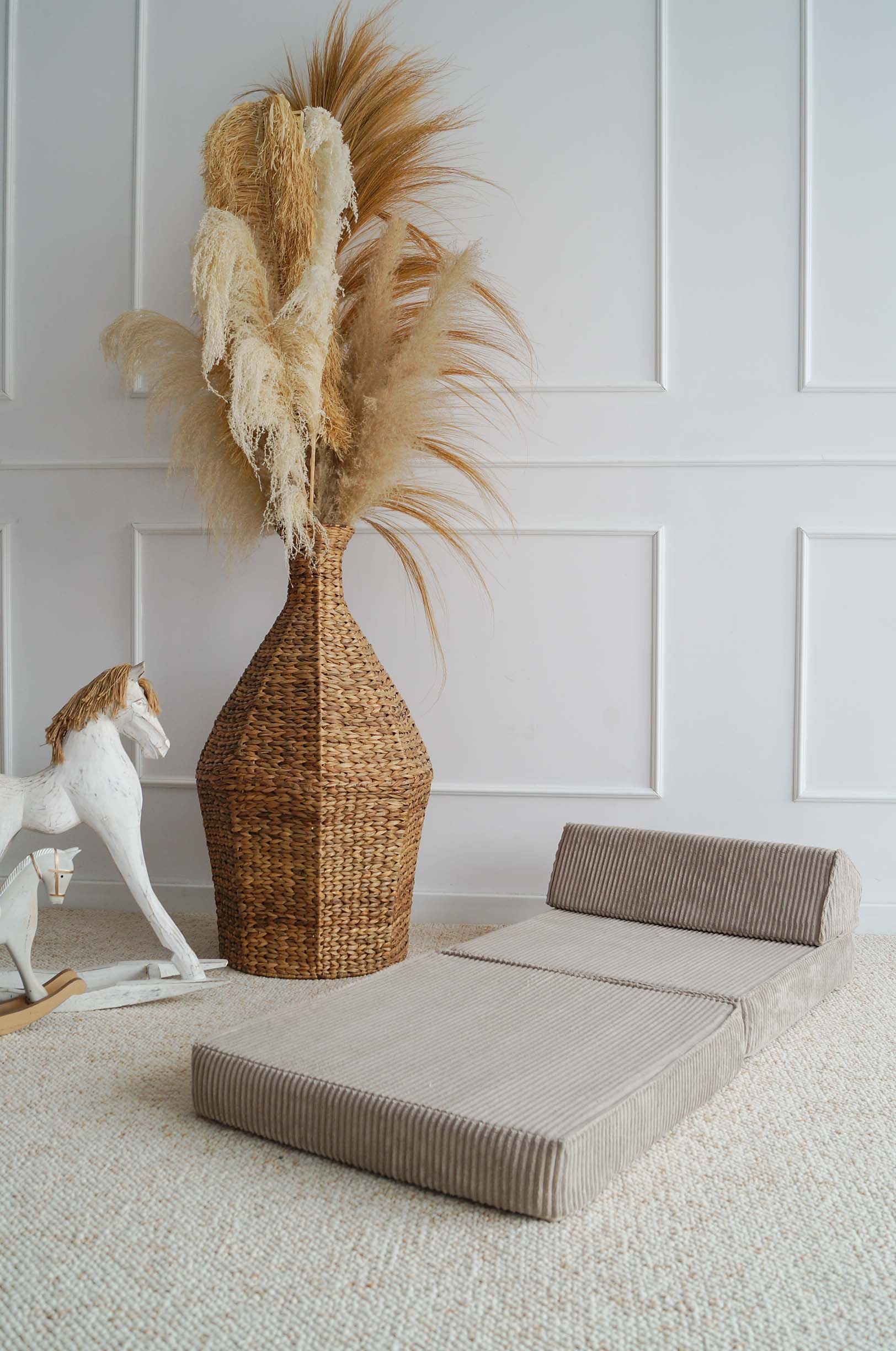 De zachte ribfluwelen stof voelt warm en comfortabel aan, terwijl de stevige vulling zorgt voor optimale ondersteuning. Het materiaal is slijtvast, duurzaam en gemakkelijk schoon te houden – perfect voor dagelijks gebruik in de kinderkamer of speelruimte. De rustige kleur en fijne textuur maken van de Rib Lounger niet alleen een praktisch meubel, maar ook een stijlvolle toevoeging aan elk interieur, van Scandinavisch tot modern.